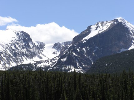 We visited Rocky Mountain National Park in June, following Janet's SALSA meeting. Day 1 (June 12) was rainy where we were, and snowy higher up, precluding our intent to take the drive up Trail Ridge Road to the highest peaks. Instead, we remained at lower levels, eyeing the elk, whose antlers were in various stages of regrowth and covered with a velvet which they will rub off as they mature. The next day we drove to Bear Lake and hiked from there to Bierstadt Lake, named after the painter (Google images) whose depictions of it called attention to the area's beauty and contributed to the formation of the National Park. Just as we were about to leave the park and head back to Denver an officer removed the closed sign. Trail Ridge Road was now open! Although it was nearly 7 PM, we went for it. At about 8 PM we reached 12,000 feet with snow difts over a meter in height. In spite of the cold, it was exquisitely beautiful. After an excellent dinner at the Cafe Basilico (recommended by our friends Bob and Mereth Meade) we went on to Denver, returning home the next day on insufficient sleep but glad for the chance -- almost missed -- to drive up into the sky. |